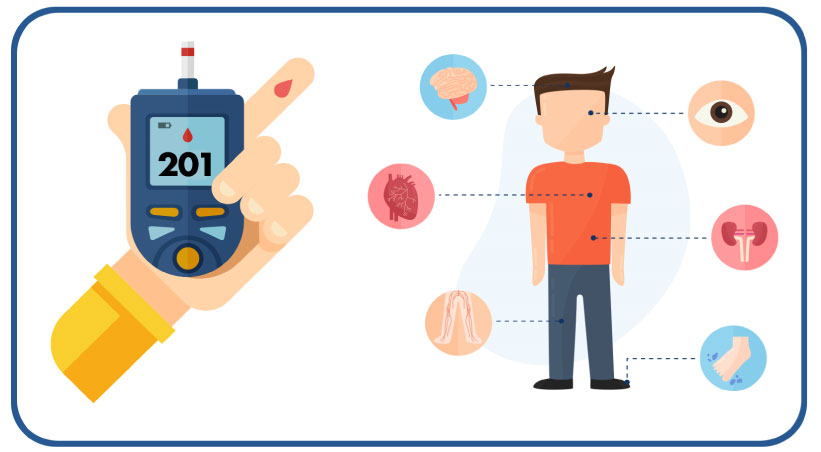 Pero con el paso del tiempo, y sobre todo si el control del nivel de azúcar es deficiente, la enfermedad avanza y comienzan a ser evidentes sus consecuencias en distintos órganos, entre los más frecuentes se encuentran los ojos, los riñones, el corazón, los nervios, los pies, etc.