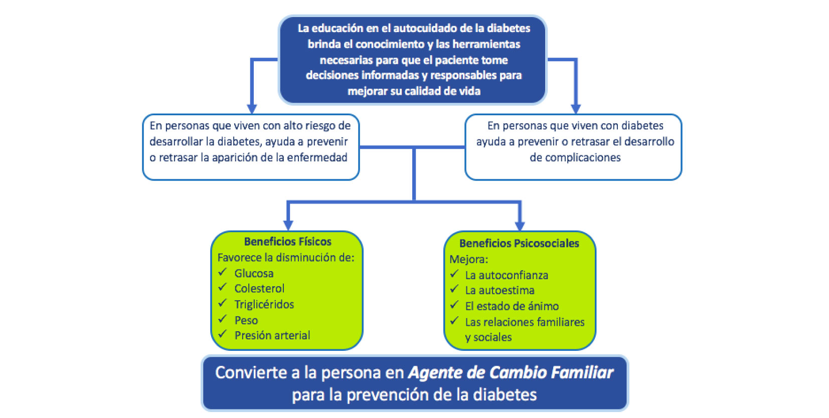 Organismos especializados, como la Organización Mundial de la Salud y la Federación Internacional de Diabetes, entre otros, señalan que la educación en diabetes brinda el conocimiento y las herramientas necesarias para que el paciente tome decisiones informadas y responsables acerca de su propio cuidado.
